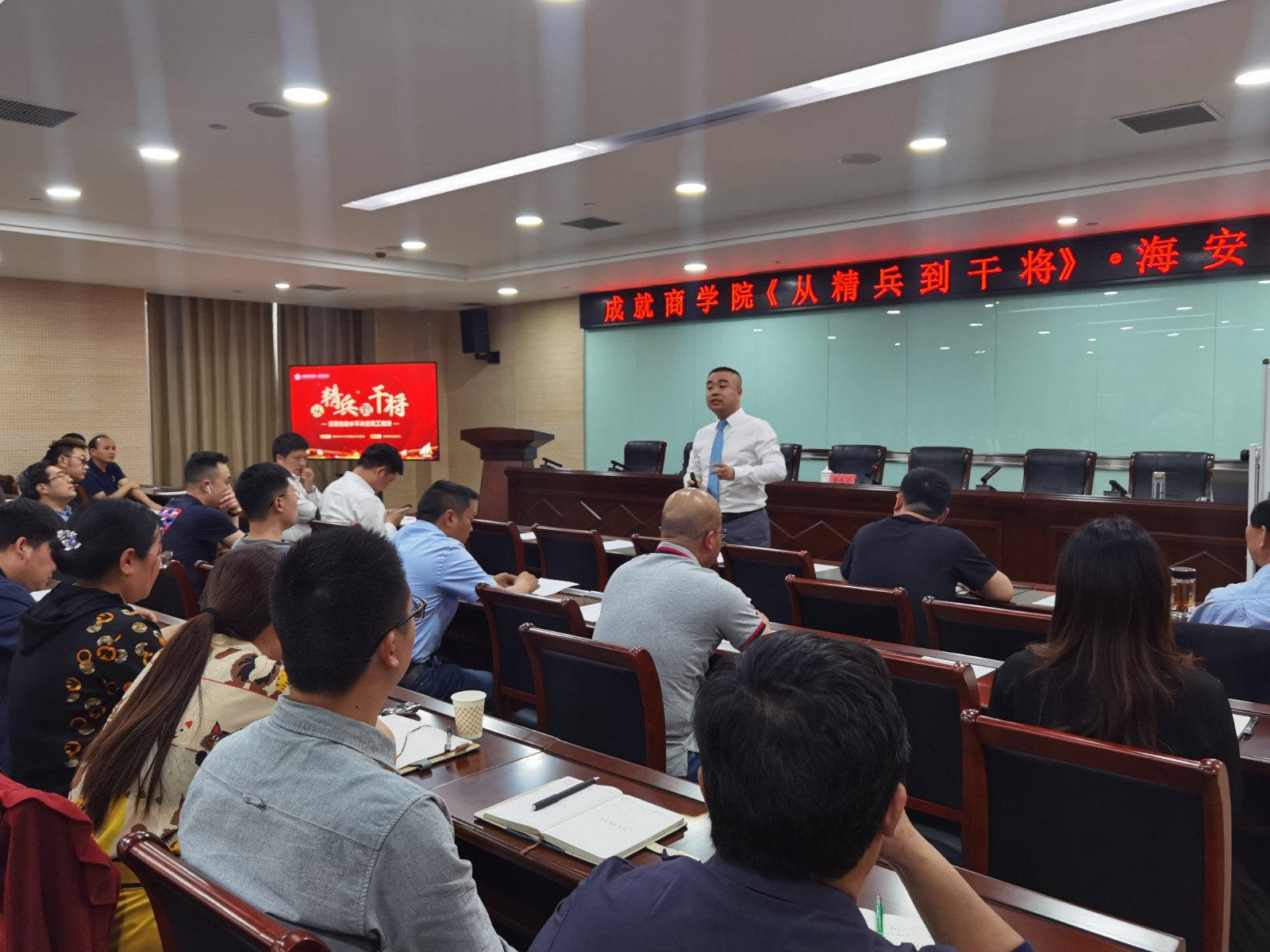 為提升海安經濟技術開發區企業管理水平,引導企業練好內功,為園區高質量發展提供強有力支撐。2021年5月8日成就咨詢首席顧問孫峯老師受邀為園區企業家們分享《從精兵到干將》專題講座。海岸經濟技術開發區經濟發展局全體人員,海迅集團、西蒙電氣、美勒家具等百余家企業高管參加會議。